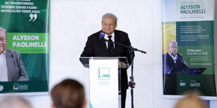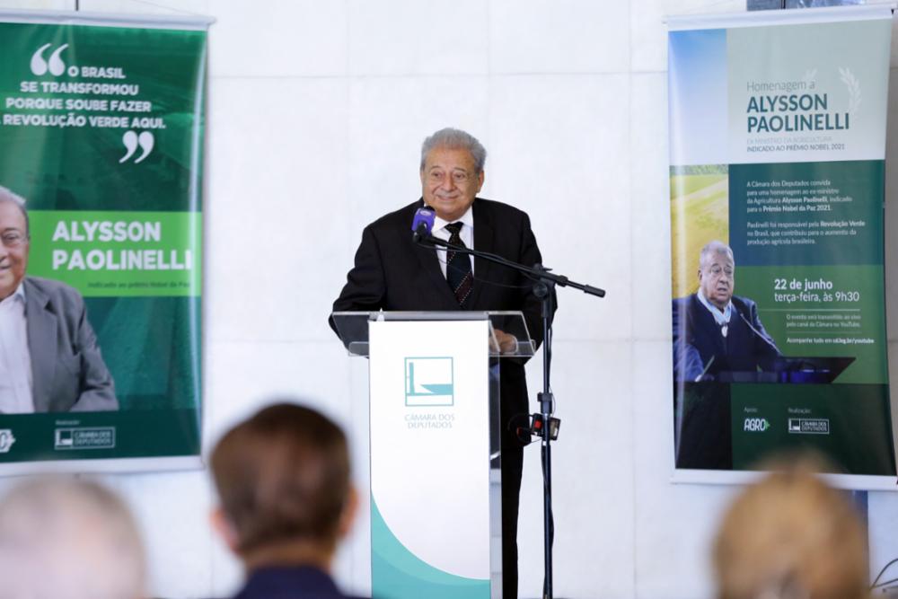 O 1º vice-presidente da Câmara dos Deputados, Marcelo Ramos (PL-AM), afirmou que o ex-deputado Alysson Paolinelli conseguiu tornar o Cerrado brasileiro um importante celeiro de produção de alimentos no mundo. Indicado ao Prêmio Nobel da Paz em 2021, Paolinelli foi homenageado nesta terça-feira (22) na Câmara. Ele foi deputado federal constituinte e ocupou o cargo de ministro da Agricultura no governo Geisel. Ele é um dos responsáveis pela chamada Revolução Verde, que fez do Brasil um dos maiores produtores mundiais de alimentos.